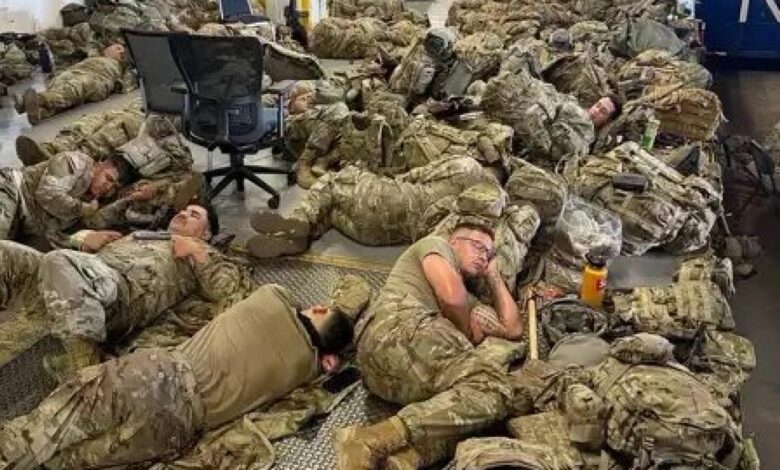 California Newsom Valisi X hesabı, ABD Ulusal Muhafızlarının yere uzanan bir fotoğrafını paylaştı.